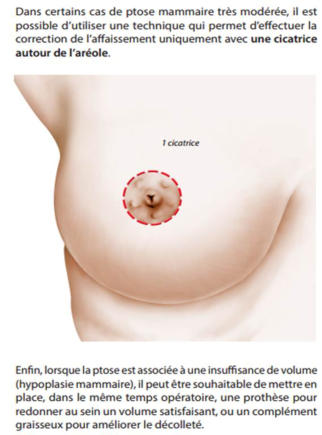 Cure de ptose mammaireLa dysharmonie entre l’étui cutané et le volume du contenu mammaire peut entrainer notamment après les grossesses, (¾ des femmes perdent du volume mammaire après les grossesses), une ptôse c’est-à-dire une chute des seins (seins « gants de toilette » ou en aspect en « coup de hache » sus mammaire externe par manque de remplissage.)Il faut noter que cette intervention nécessite la réalisation de cicatrices sur le sein puisqu’il faut ôter de la peau.Un joli sein ne résulte que de la bonne harmonie entre le contenant (étui cutané) et le contenu (la glande).La cure de ptôse va permettre à la patiente, si le volume des seins lui convient, de retrouver une poitrine plus ferme et plus harmonieuse.Elle permet de retrouver à la fois confort dans la vie quotidienne et estime de soi.En pratique : •Anesthésie Générale•1 à 2 nuits d’hospitalisation•Repos post opératoire de 8 à 10 jours (pas d’arrêt de travail car intervention esthétique)•Peu douloureux•Résultat stabilisé entre un et trois mois •« En option, application du laser UrgoTouch sur les cicatrices afin d’obtenir le meilleur résultat esthétique (en savoir plus) »